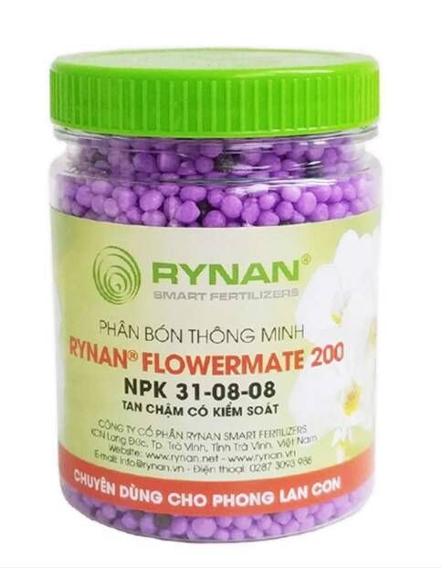 Phân bón Rynan 200 có hàm lượng khoáng N-P-K lần lượng là 31%, 8% và 8% và hàm lượng chitosan được bổ sung giúp cho phong lan sinh trưởng mạnh, giúp cây lan con sinh trưởng và phát triển, kích thích chồi và lá sinh trưởng mạnh.