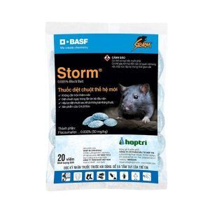 Thuốc diệt chuột storm được sản xuất bởi Tập đoàn BASF – CHLB Đức, sản phẩm được đóng dạng viên nén theo công nghệ chống đông máu tối ưu. Chỉ cần nhử chuột ăn phải viên nén STORM, chuột sẽ tìm đến nơi có nguồn nước uống và sẽ chết khoảng 3 ngày sau đó.